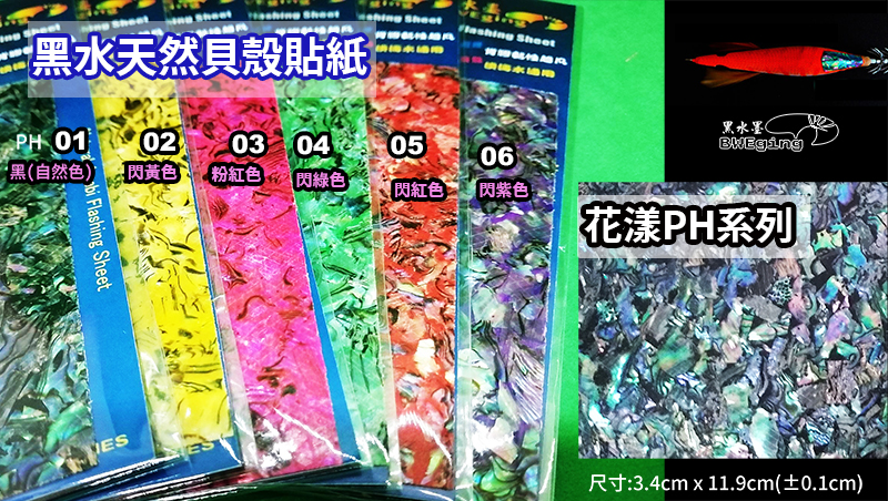 【黑水】台灣加工生產黑水貝殼貼紙木蝦.鐵板.路亞專用,台灣地區特別優惠每張80元. 5張300元.