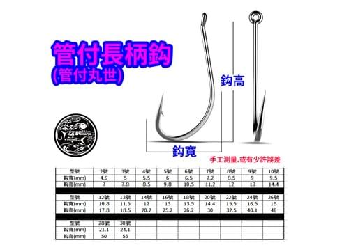 【黑水墨】管付長柄鈎 (丸世) 3號~30號 (台灣現貨) 活蝦鈎 斜嘴鈎 磯釣 船釣 魚鈎 釣魚